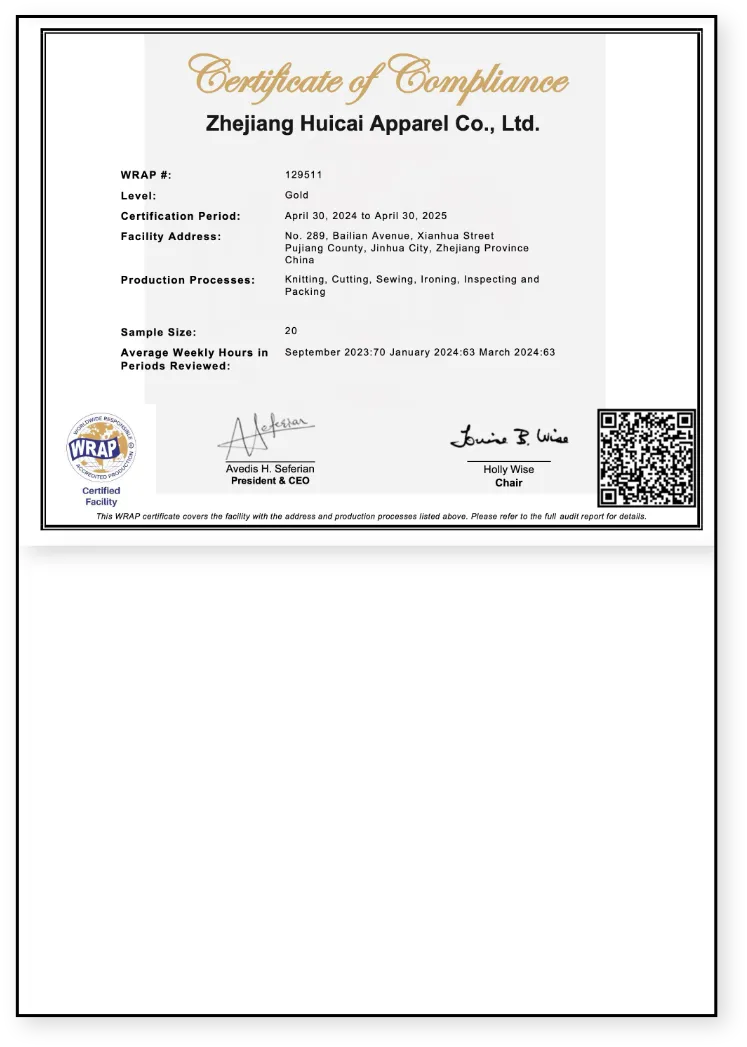 CERTIFIED:OEKO-TEX,BSCI,WRAP.